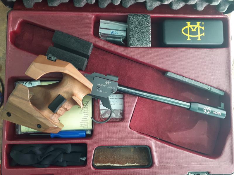 Hola. Se vende pistola libre Morini CM84E. Comprada en 2014, lleva unos 6000 tiros. Cacha talla S sin retocar en absoluto (los añadidos que se ven están con cinta adhesiva de doble cara). Va en el maletín tal cual viene de fábrica: estuche de limpieza, 2 muelles de recambio, instrucciones, blanco de prueba y un punto extra de 4mm de ancho.