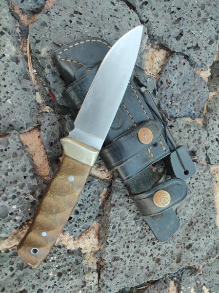 Tengo uno con mango de mi carta, acero nórdico y funda con pedernal. En su momento le hice de todo, lo usé para descuerar caza mayor, cortar piezas pequeñas de leña para iniciar fuego, comer en el campo, cualquier cosa necesaria en el cortijo, le di mala vida... Y ahí está como un campeón, quizás uno de los mejores modelos de muela.