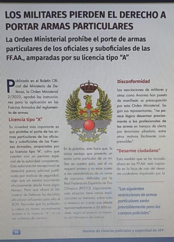 Portar armas SIEMPRE ha estado prohibido, tanto para militares, como para policías fuera de servicio, etc. No digo que me parezca bien (de hecho me parece mal y es una locura), solo digo que esto no es algo nuevo, esto lleva décadas así. Los que han escrito ese artículo de las fotos parece que no han leído la orden ni el reglamento.