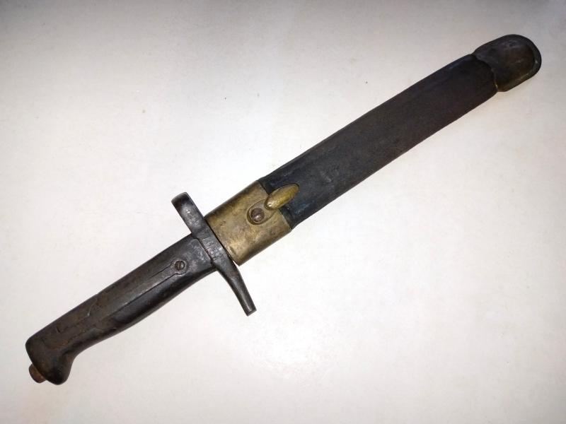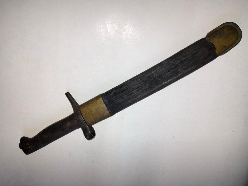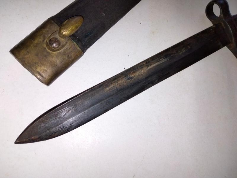 la bayoneta esta usada , con grasa seca , muy sucia pero bastante entera y sin oxidos , con su funda