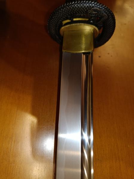 AVISO : La hoja de la katana tiene un pequeño defecto estético en una de sus caras. Se me ocurrió la estupidez de intentar pulirla para darle mas brillo con pasta de pulir y un disco de pulidora pero tuve que parar por que no me gustaba el resultado. Se aprecia perfectamente en una de las fotos.