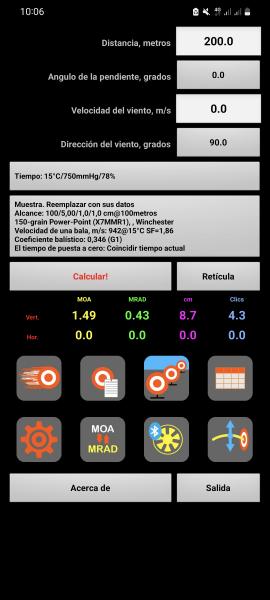 Según la app la bala a 200m debía caer 8.2 cm, pero cayó 14cm, siempre apuntando al centro de la diana.