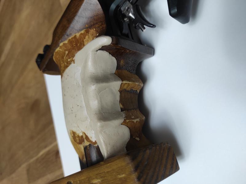 El canal del dedo pulgar lo he agrandado para orientar el dedo hacia el gatillo.