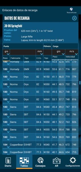 Te adjunto tablas de Vithavuori con diferentes puntas de 180. podras ver q las TSX las carga con menos polvora.