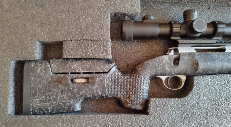 Rifle, maleta, carril de 20 moas en la acción y picattiny para bípode.