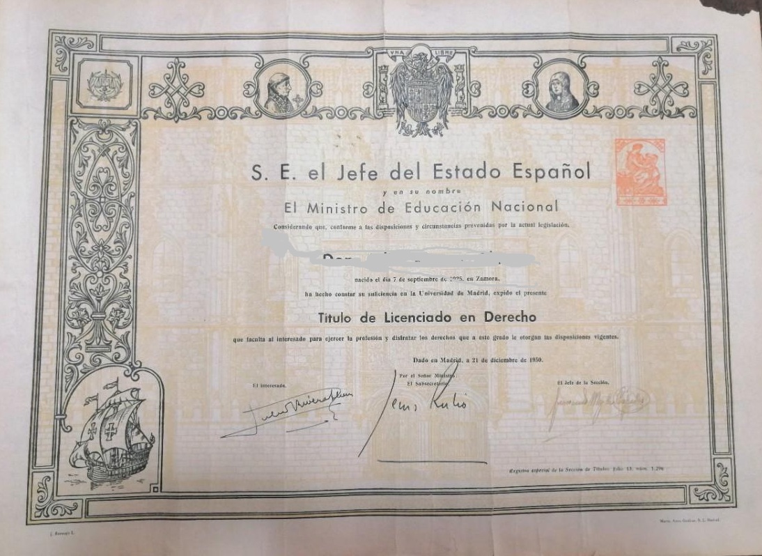 Titulo de LICENCIADO EN DERECHO expedido por la Universidad de La Laguna