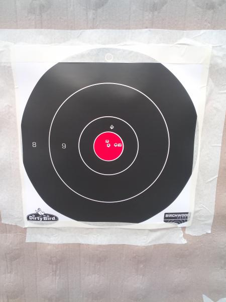 Vengo del campo de tiro y hace un año que no disparaba con rifle, enseño la agrupación a 100 metros con esta munición y el indio es malo de cojones.