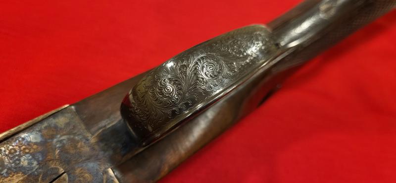 Voy a intentar colgar fotos de detalle para que se pueda apreciar lo mejor posible el cuidadoso y esmerado trabajo de grabado fino artesanal tipo Purdey o "inglés" realizado a mano sobre la báscula, platinas, guardamontes, etc... porque realmente merece la pena verlo y poder valorarlo.