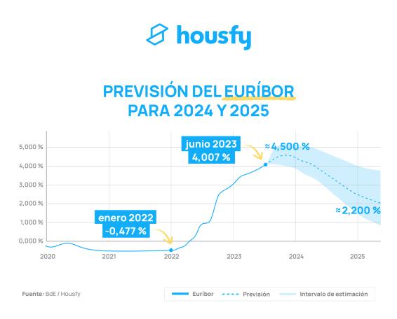 El Euribor va a subir puede que mas este 2023, pero en todas las fuentes consultadas se dice que va a bajar poco a poco el 2024. No quiere decir que eso sea cierto, ya veremos, pero es lo que dicen (bajada de tipos del BCE), y bajar mas el 2025.