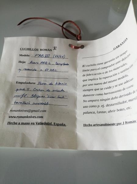 Hola, que tal, vendo navaja del Foro de Armas Blancas modelo FAB VII hecha por el artesano J. Román Cabrero.