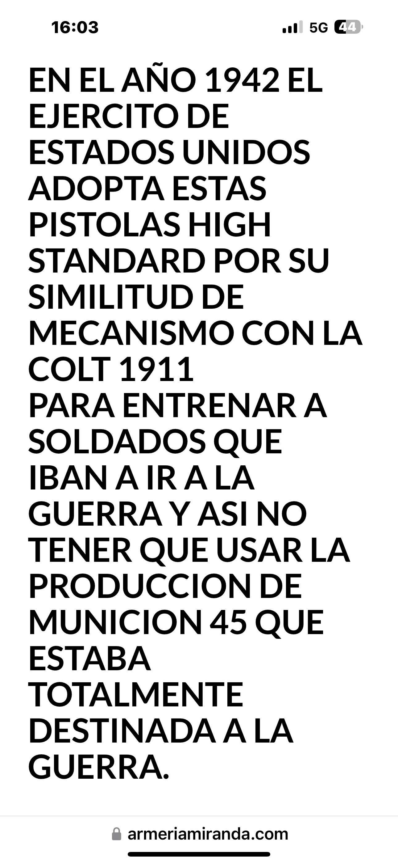 Libripens escribió:Se ofrece una magnifica pistola Hig Standard modelo THE VÍCTOR cal 22Lr, toda de acero forjado, de las que hoy no se fabrican, estado excelente pavón como el primer día, a pesar del tiempo que tiene, 2 cargadores, cachas de regalo anatómicas de nogal nuevas. Gatillo regulable en presión, tigestop, cañón pesado.