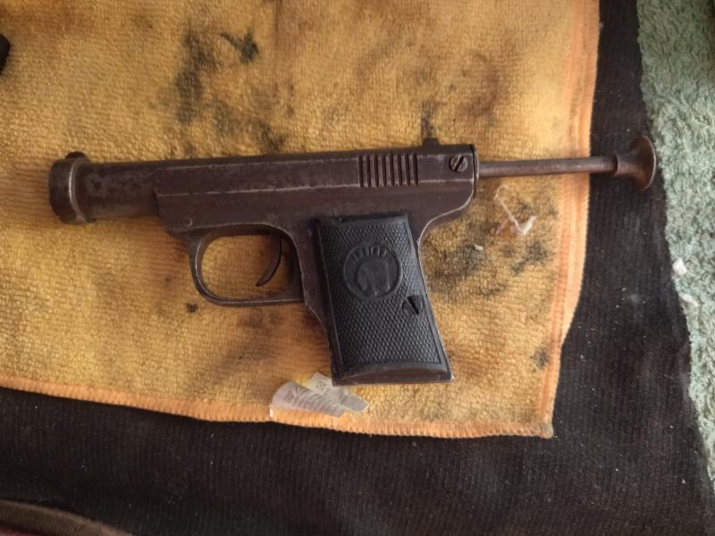 Pues eso, hoy rebuscando e encontrado una pistola de aire cometa indian pero no la nueva si no la antigua, la cacha derecha tuve que hacerla , todo lo demás es original, y FUNCIONA perfectamente bueno mecanicamente habría que darle algo de fuerza, pero no lo haré es colección, era una pistola para tirar corchitos, si alguien sabe algo más pues aportarlo