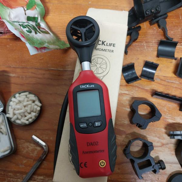 Un visor, varios railes y monturas entre ellas unas Vision King, un anemómetro, un bote sin abrir de abrillantador para pavonado, 3 botecitos de grasa de silicona, un cargador de 4,5 de hatsan at 44, 2 sacos de tiro, etc...