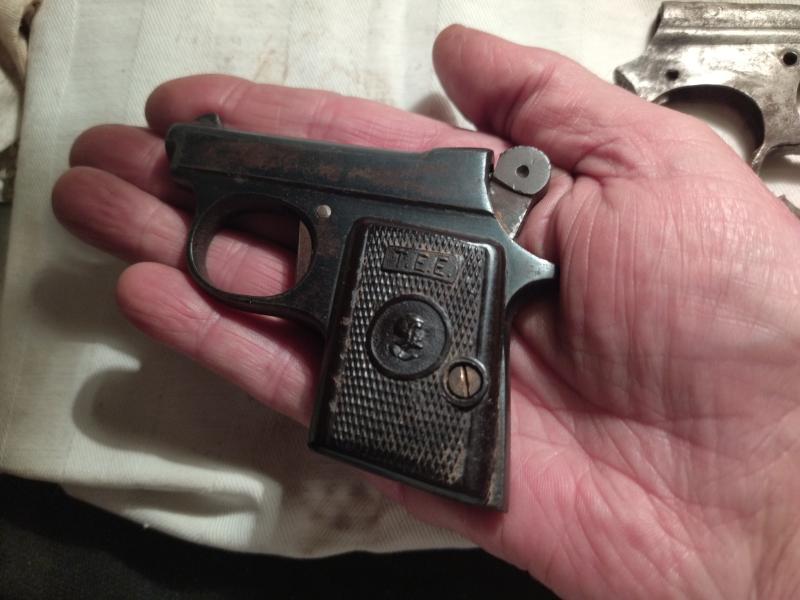 Buenas eso vendo 2 pistolas vaya mejor una y media, espantaperros son de pistón no de fogueo, muy antiguas usadas por carteros, serenos etc. No se pueden manipular el cañon a parte de ser macizo no daría para una balita, aparte que al ser de colección seria un gran pecado. Bueno la marca es T.E.E funciona perfectamente, la otra solo la acompaña está hecha una bueno ya lo vereis, adjunto un enlace de una página web