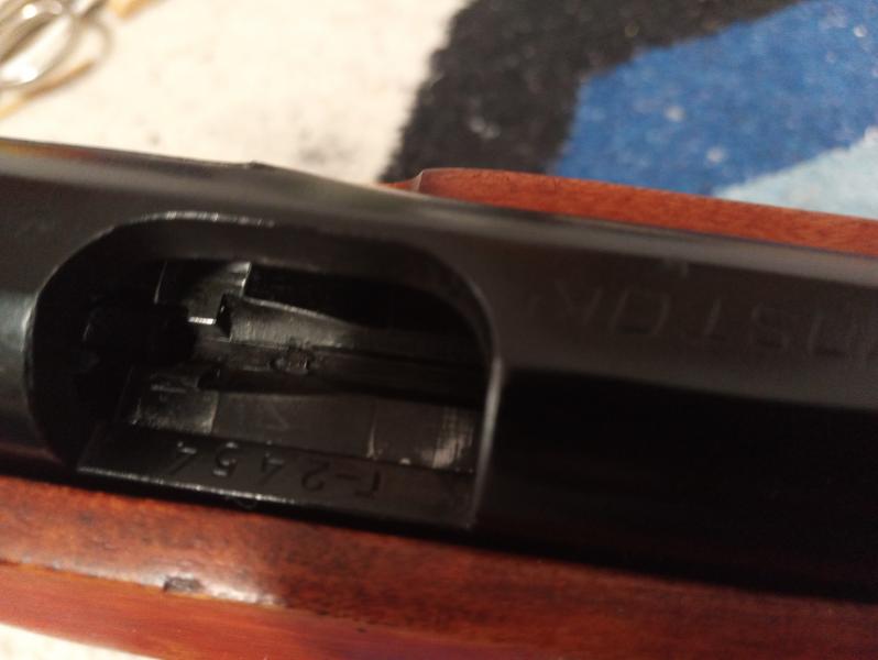 :duelo obsérvese el detalle,el ensanche del canal para depositar el cartucho y facilitar la acción.diez disparos,a cincuenta metros.CCI