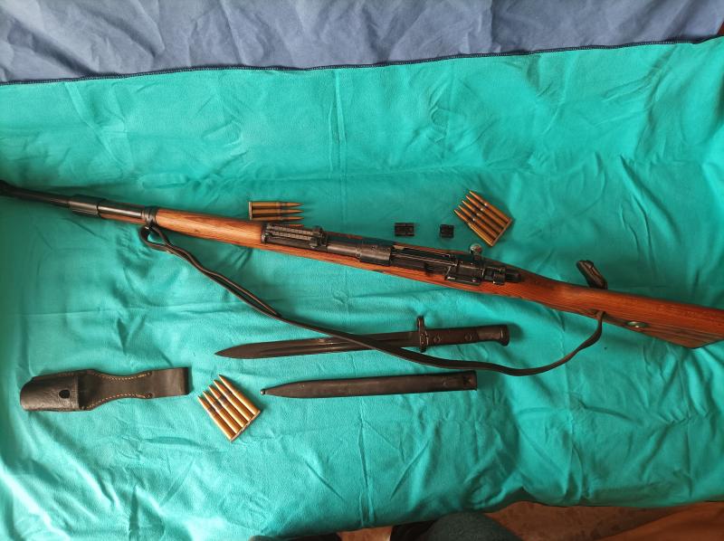 Incluye lo que aparece en la foto, monturas weaver, baqueta, cubre punto, bayoneta, funda bayoneta y tahalí, correa portafusil original y tres peines para munición.