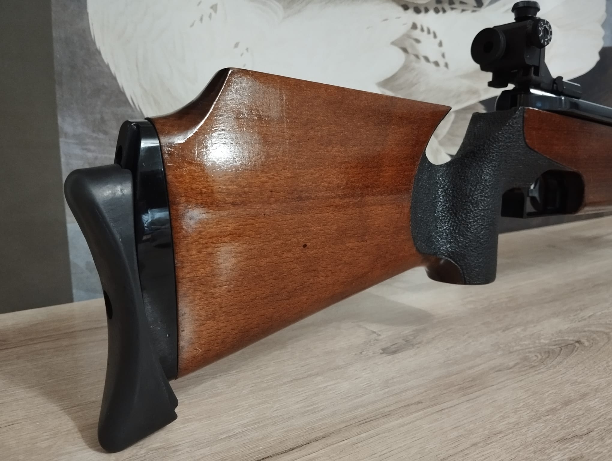 Feinwerkbau 300 S JR, la carabina se encuentra en muy buen estado con signos de uso, la acción presenta algunas marcas superficiales conservando el negro brillante del pavonado en su práctica totalidad, la culata también presenta marcas superficiales, sin grietas, golpes……