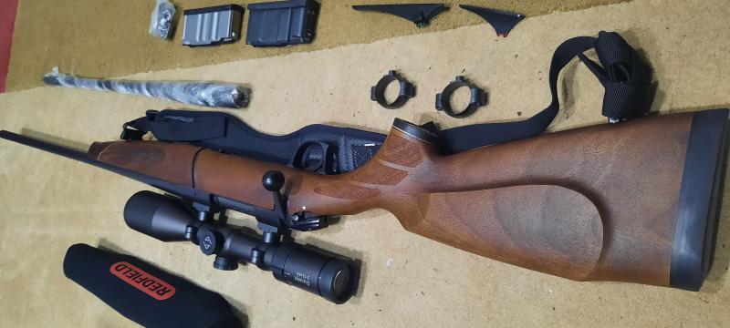 Vendo rifle multicalibre, con maderas en un estado excepcional, modelo bx 11 originalmente en 30-06 Sprinf. Con cañón de 51 y con otro cañón del 300 WM. con su cargador extraible en cada calibre y cabezal de cerrojo para los calibres magnun.