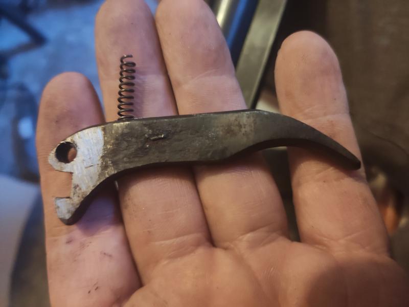 En cuanto vea que puedo pongo alguna que le hice antes de desmontarla ,ya estoy a ello y resulta que tampoco tiene el muelle. Se que estará con el gatillo guardado en quién sabe donde, cuarenta anos +- son muchos para algunas cosas. Ahora tb. tengo que averiguar cual le sirve y comprarlo mientras la vuelvo a poner a punto. Todo se andará. Si alguien lo sabe quedo en espera.