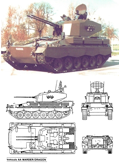 Y finalmente por parte alemana, citaros la versión AA que se hizo del VCI Marder con una torre dotada con dos cañones de 30 mm, pero que no paso de las pruebas.