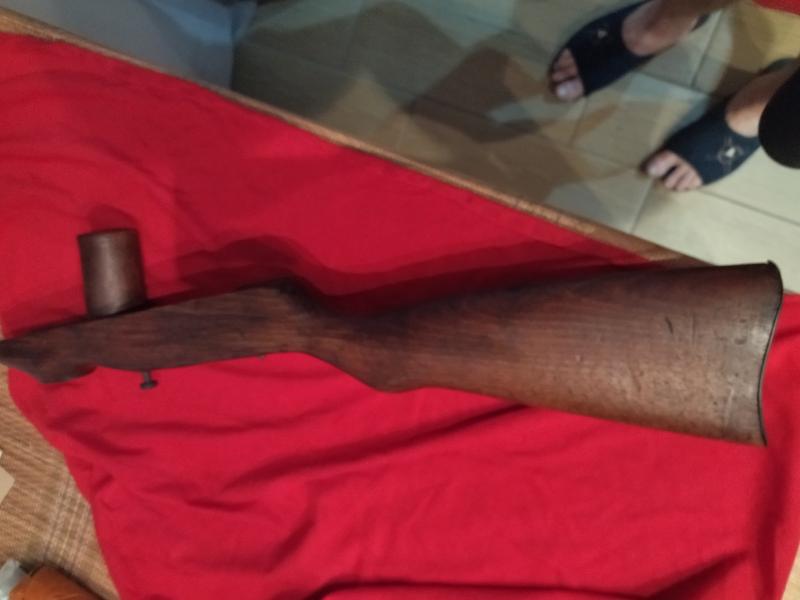 La culata subfusil coruña mod 1944, es original español lo vereis por el pasador o tornillo para el desmontaje, que el alemán no llevaba, parece que tiene una grieta pero no es así es la madera