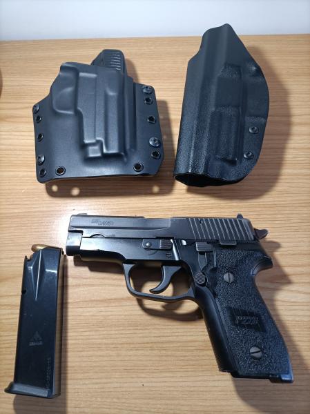 Cambio Sig P228 por TAURUS 1911 45 ajustando precio. Guiada en A en Madrid, se entrega como veis, con 2 fundas de kydex, una exterior y otra interior, y dos cargadores Mecgar de 15. Pavón un poco desgastado por porte pero funcionamiento perfecto, como buena Sig. Pocos tiros.