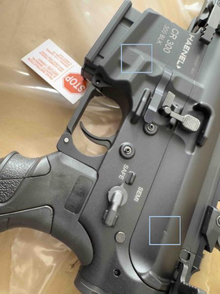 No sé qué controles de calidad pasa esta gente, pero a simple vista hay defectos en el acabado de la pintura, un bollo en el upper, el alza y el punto de mira parecen de los chinos (rebabas y muestras de desgaste en el plástico), …