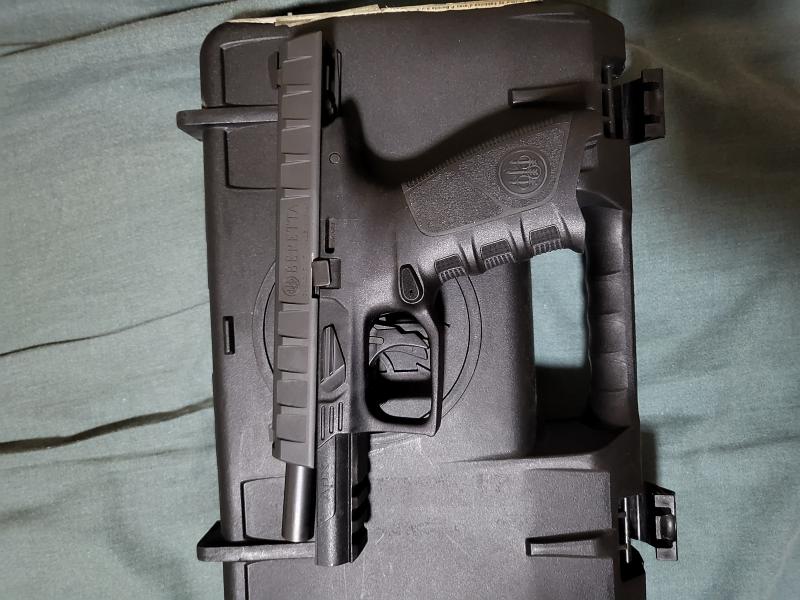 Vendo Beretta Apx 9mm nueva nueva sin estrenar no ha disparado guiada en F con su caja varilla limpieza y sus dos cargadores precio 600€