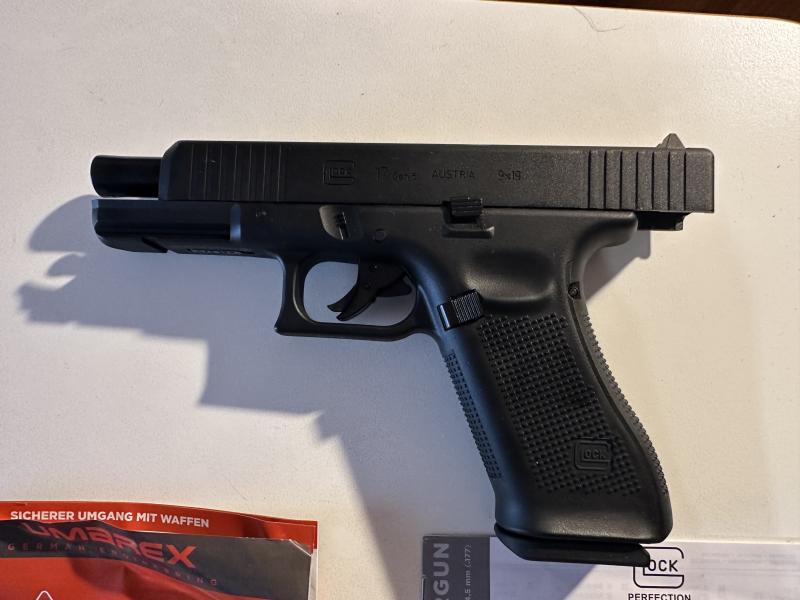Buenos días, quiero probar cosas nuevas y quizá de otro estilo y tengo que aligerar equipaje. Pongo a la venta esta Glock 17 cal 4,5, fabricada por Umarex, con Blowback y full metal. Clavada al arma original.
