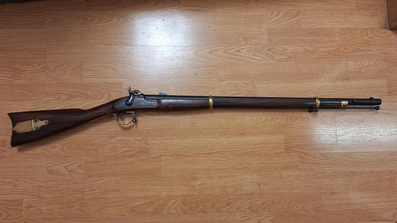 Vendo rifle zuave 1863 match calibre 58 cañon de 7 estrias, seminuevo usado muy pocas veces esta como nuevo, lo entrego con acesorios, baqueta, embudo de carga, soporte de mesa para apollarlo y funda rigida de transporte ver fotos, lo vendo todo por 450 euros mas gastos de envio si los hay, se encuentra en Barcelona.