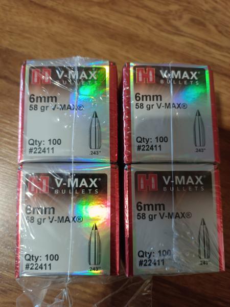 4 cajas de puntas vmax de 58gr calibre 243