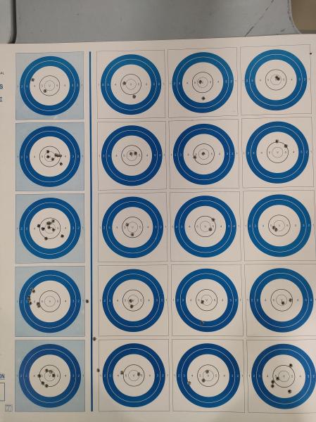 Al haber cambiado la munición estuve haciendo pruebas y ajustando el visor con lo que no tiré en plan serio. Con todo, salí muy contento, y consigo identificar cuando suelto el tiro y no ha ido bien antes de verlo, digamos que estoy ganando esa sensación.