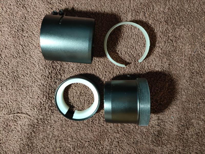 Tiene 2 adaptadores, uno de 45mm y otro de 48 que se adapta a distintas medidas mas pequeñas mediante las 2 arandelas de plastico.