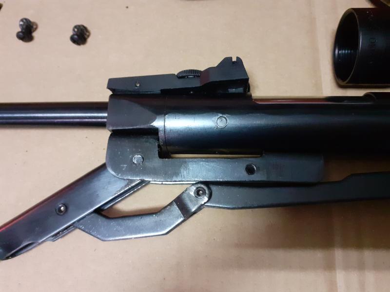 Poco más que añadir,solo que es candidata para un trabajo de refinamiento,porque estoy seguro que al menos con una bocacha de hierro de unos 190,200 gramos,se atenúa el salto de la punta del cañón.El visor será montado en otras,para comprobar que no esté roto.No puede ser esa disparidad de entre agujero y agujero,que me ha hecho imposible corregir el visor,porque a ver donde regula el tiro.