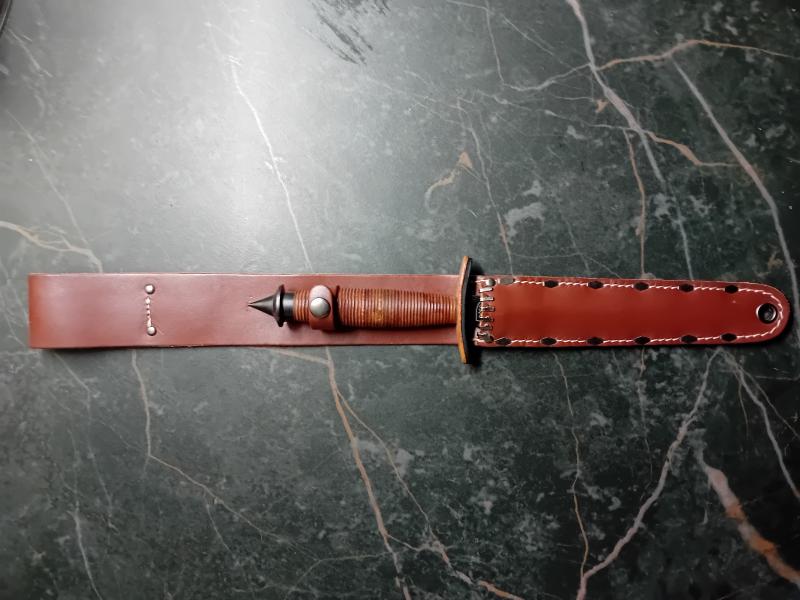 Vendo cuchillo de combate de United cutlery réplica del cuchillo del colonel Aaron Bank. Con funda de cuero y mango de cuero. Nuevo a estrenar, procedente de colección.