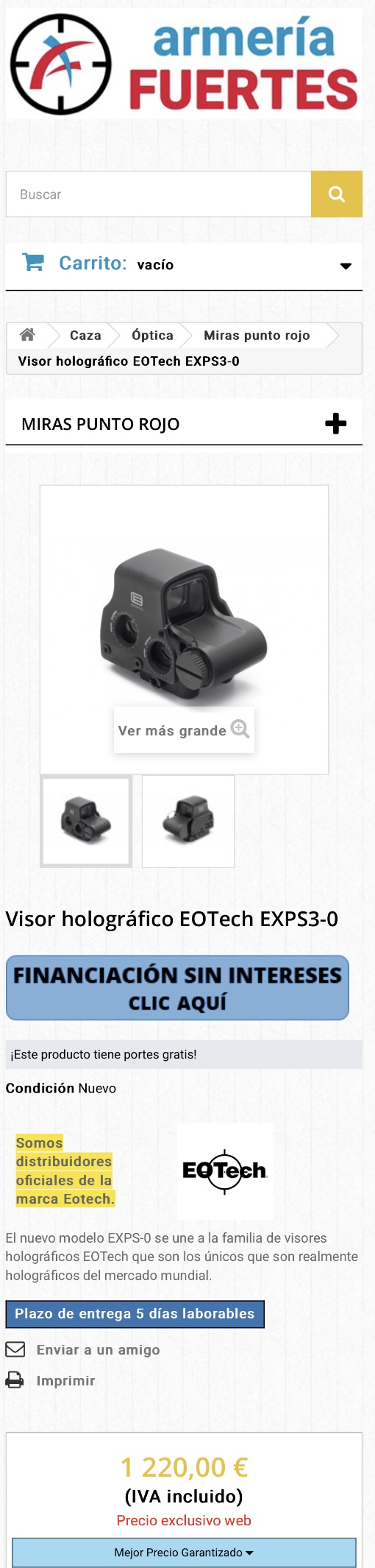 No dudo de que un Eotech EXPS3 pueda estar “en cierta tienda” a 912 €, pero lo normal es esto de aquí: