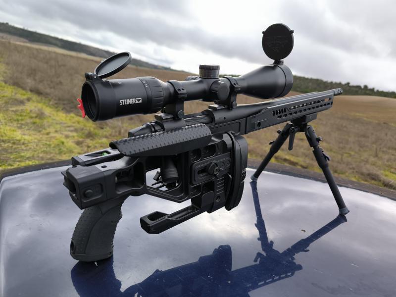 Tiene sacada la tabla balística perfecta hasta 500m, cualquier bicho que se ponga de 500 para abajo tiene serios problemas si el tirador hace lo suyo