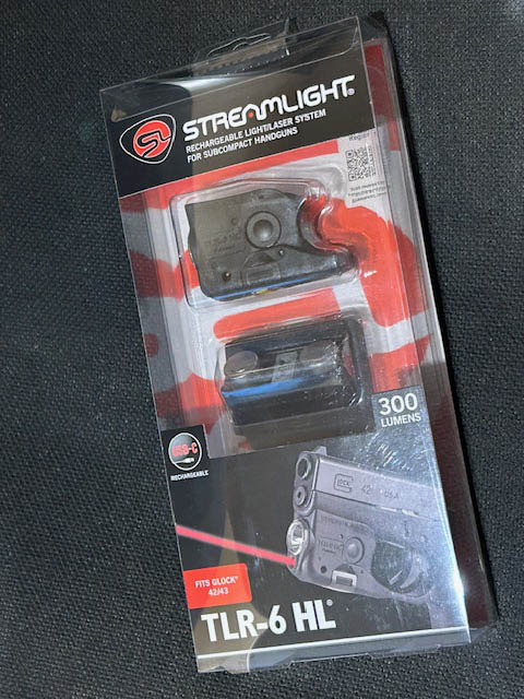 OFERTA. Nuevo a estrenar, sin desempaquetar. Módulo STREAMLIGHT TLR-6 HL con 300 LUMENS de foco y láser color rojo. Incluye 2 baterías recargable USB-C. Para pistola Glock subcompacta G42 y G43. Tres modos de operación.