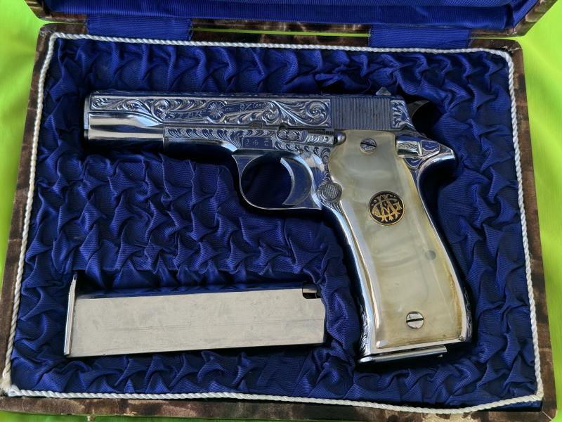 750€ vendo pistola guiada en F, una pistola única con acabados en plata, con caja, baqueta y libro original, dos cargadores, para más información al 623569791