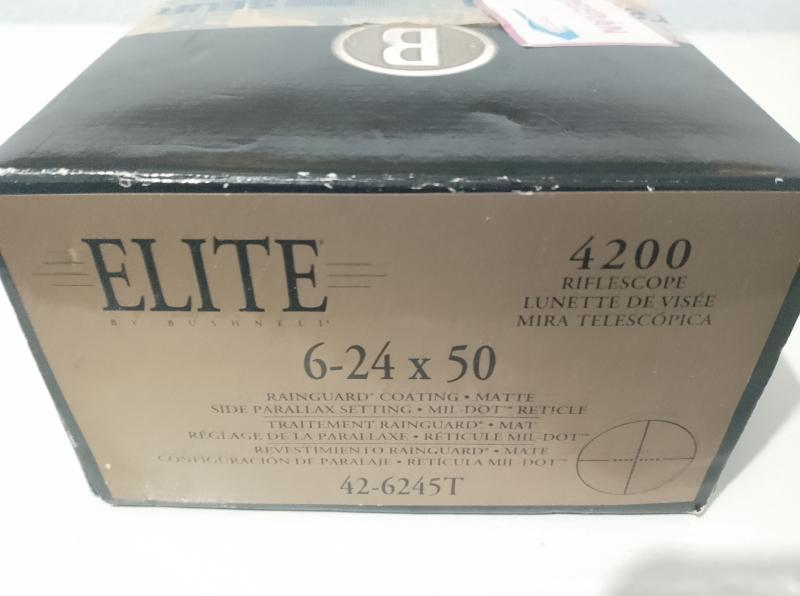 Bushnell Elite Tactical 4200 6-24x50 retícula SFP mildot. Modelo 42-6245T. Torretas de tiro, indicador de revolución, ajuste de 1/4 de MOA. En perfecto estado, sin marcas y con muy poco uso. Lo vendo porque no lo utilizo.