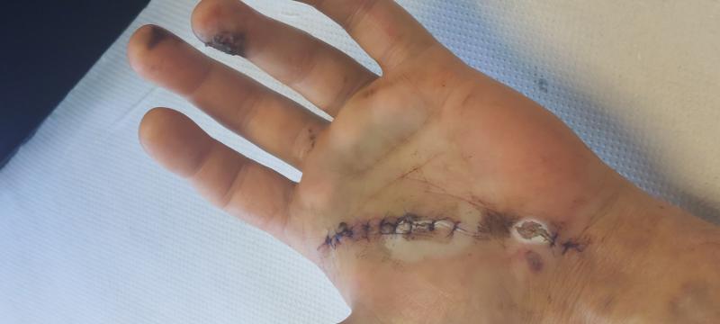 Afortunadamente es una herida limpia que no me a tocado nervios y en 15/20 días me quitaran los puntos.