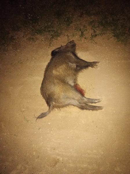 En uno de los cerdos podemos ver el orificio de entrada, el de salida era algo mas grande, la distancia no era mas de 25metros.