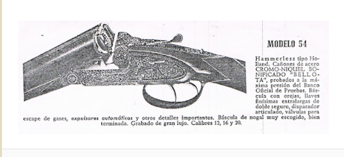 Te paso información del modelo 54, los grabados de tu escopeta son de encargo como los que AyA hacia para el modelo 37.y no son los que muestra el catálogo.