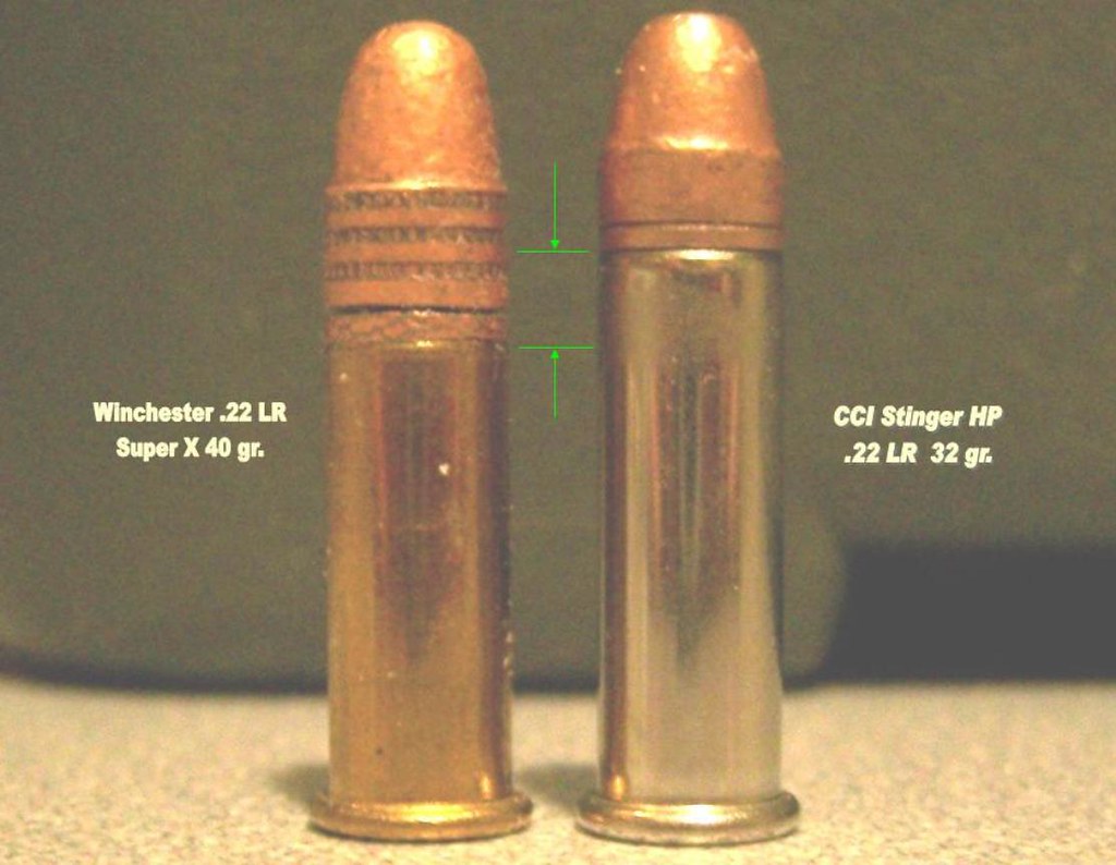 El Stinger cuenta con una vaina alargada y niquelada que mide aproximadamente 0,700 pulgadas de largo, o aproximadamente 0,100 pulgadas más que las vainas estándar para rifles largos. Como se mencionó, la bala pesa 32 granos en lugar de los 37 a 40 granos típicos de la mayoría de los cartuchos de alta velocidad para rifles largos .22. Esto resulta en un diseño de bala con talón con un vástago notablemente más corto, de aproximadamente 0,122 pulgadas, mientras que la mayoría de las balas de 40 granos tienen un vástago de entre 0,160 y 0,210 pulgadas. Esto acorta la superficie de apoyo de la bala y, al combinarse con el menor peso de la bala y la mayor capacidad de pólvora, de aproximadamente 3,7 granos (a diferencia de la mayoría de las cargas de alta velocidad para rifles largos que contienen alrededor de 2,4 granos de pólvora), resulta en hipervelocidad.