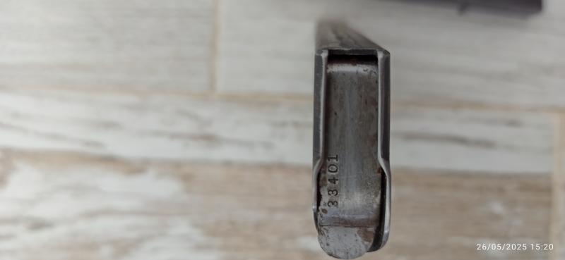 Uno de los cargadores tiene el núm. de serie del arma en la teja elevadora (anterior a 1936 creo) , el otro no lo tiene y podría ser no original.