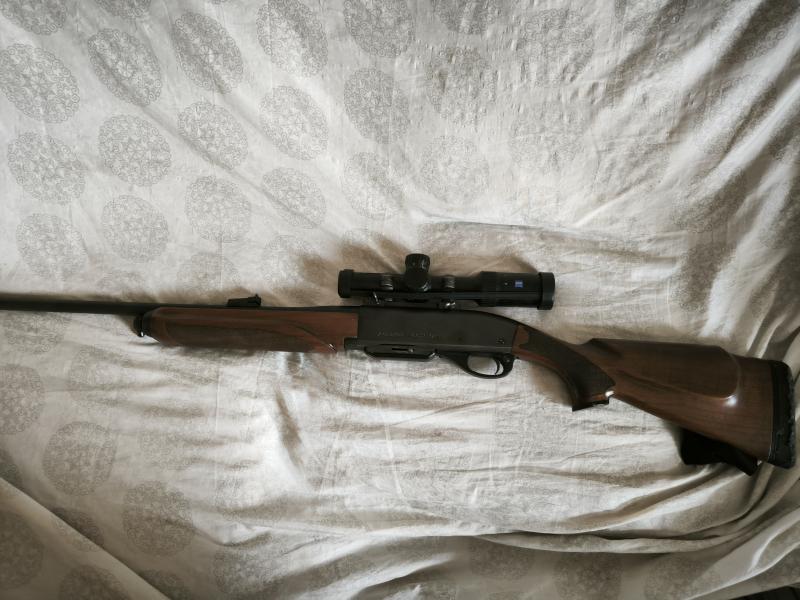 Hola, vendo remington 7400 en 30.06 con visor Zeiss conquest V4 1-4x24 retícula iluminada como nuevo, con anillas desmontables, con otro cargador y otro juego de culata,cantonera y guardamanos.