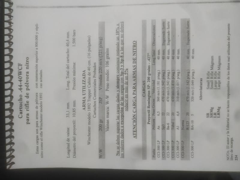 Ten en cuenta que este calibre, se llama 44-40 porque llevaba originalmente 40 grains de pólvora negra.