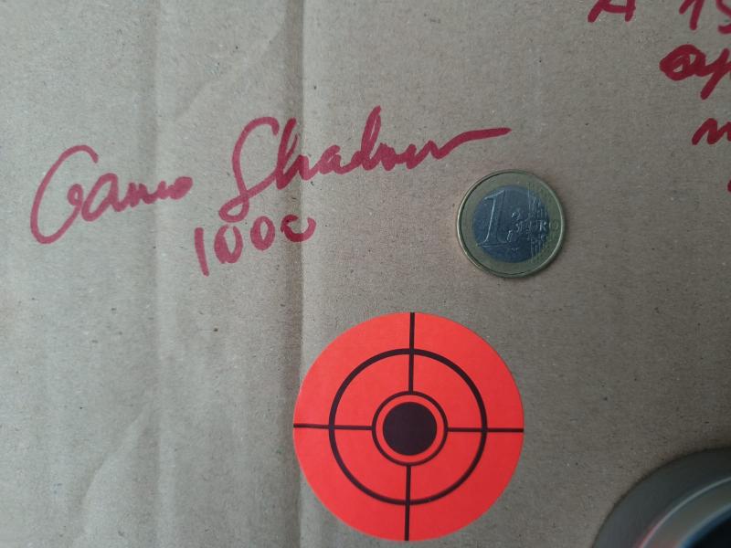 Casualmente últimamente uso la misma diana que tú, para los que no se hayan dado cuenta es de sólo 5x5 cm y a 25 metros el punto de mira prácticamente te tapa el 100% del centro. Muy meritoria tu tirada.