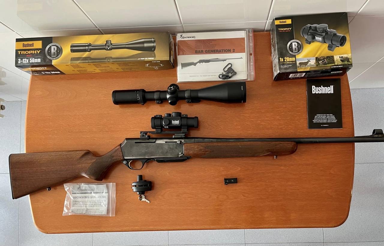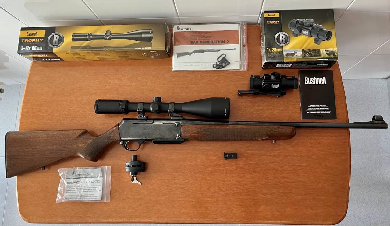 Eder escribió:Vendo rifle Browning MK2, cal 3006, visor Bushnell trophy XLT 3-12x56 con reticula iluminada punto rojo, visor Bushnell trophy red dot iluminado 1x28mm, los dos con sus monturas Apel para intercambiar sobre bases Apel, puestos a tiro a 100 y 25 m respectivamente, accesorios y documentación originales, único propietario. El rifle está en BIzkaia.