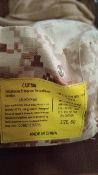 Lo dicho. Dispongo de gorra de los MARINES de U.S.A. totalmente nueva, sin uso. Camuflaje digital. Es en color desierto.Talla 60. 65% poliéster y 35% algodón. Tiene 6 taladros con agujeros de 3mm de diámetro aprox para refrescar la cabeza.